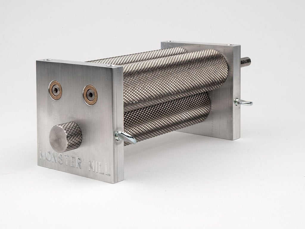 There are two roller material options available for the standard 1.5" mills. They come standard with 1144 alloy steel, which offers fantastic wear for home brewers. Plain steel mills kept indoors, and used regularly won't have rust issues. Non climate controlled areas, or minimal usage could see some corrosion come up that is easily removed with a wire brush. As an upgrade to 1144 steel we offer 303 Stainless Steel. It will wear just about the same as our 1144 steel, but will not rust. Recommended for those that live in salty or moist environments, and those that want to wet mill. We do NOT recommend this mill for any commercial operation, brew shop, brewery etc. This mill will NOT mill corn, and doesn't work well with rye by itself. It is designed for barley and wheat malt, and un-malted wheat. For corn see the 2Pro or the 2ProPD.